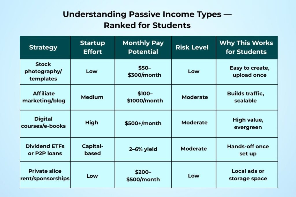 Student-friendly passive income options are all about creating streams that require minimal ongoing effort once set up. For students, this means earning while studying, traveling, or even binge-watching that new series. Think of it as planting a money tree that grows on autopilot—sure, you water it initially, but then it just keeps giving. In a nutshell, these are ways to generate extra income through investments, digital products, or assets that work for you, not the other way around. (That's about 45 words, hitting that sweet spot for search engines.)